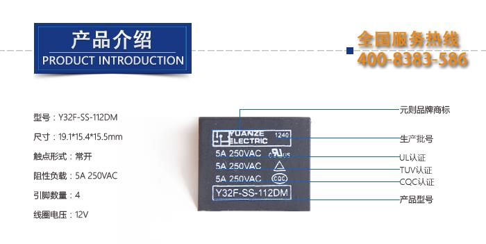 适用范围:Y32F-DM这家12v继电器制造商是小型(18.4*10.2*15.5mm),开关容量为5a,最大开关功率为1250va,适于密集安装,耐冲击电压:5000v。主要适用于家电,控制面板,空调机,电烤箱等